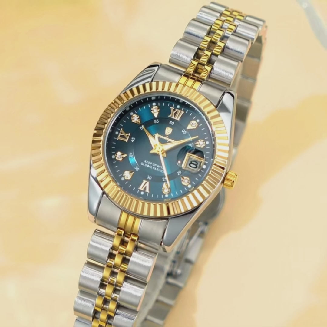 A refined stainless-steel watch with a minimalist dial, luminous hands, complete calendar, and a waterproof design up to 3 Bar — timeless elegance for every occasion